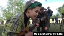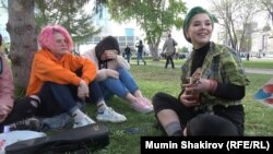 Ближе к 19:00 народ почти полностью заполнил сквер, точнее ту часть, которая выходила к драмтеатру. Эта площадка по атмосфере местами напоминала протестную акцию "Оккупай Абай" 2012 года в Москве, когда сотни людей собирались на Чистых Прудах, где был обустроен основной лагерь оппозиции с культурной программой. Так же и здесь, в сквере молодежь разбилась на группы, организовав миниконцерты и выступления, как под живые инструменты, так и под фонограмму.