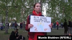 На тот момент единственным "возмутителем спокойствия" оказалась жительница Санкт-Петербурга Эльвира Комарова. Она пришла в сквер у драмтеатра и приковала себя противоугонной велосипедной цепью к дереву. Сотрудники полиции пытались освободить ее с помощью садовых ножниц, но помешали очевидцы, они привлекли внимание активистов. Завязалась словесная перепалка. Люди возмущались, что Комаровой больно. Но сопротивление Эльвиры длилось недолго, ее посадили в полицейскую машину.