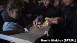 К 23:00 мирная акция с песнями и бесплатной раздачей пиццы обернулась давкой, криками и задержаниями. В толпе и за забором взрывали петарды и дымовые шашки. Активисты называли тех, кто зажигает фаеры и бросает их в сторону росгвардейцев, провокаторами.