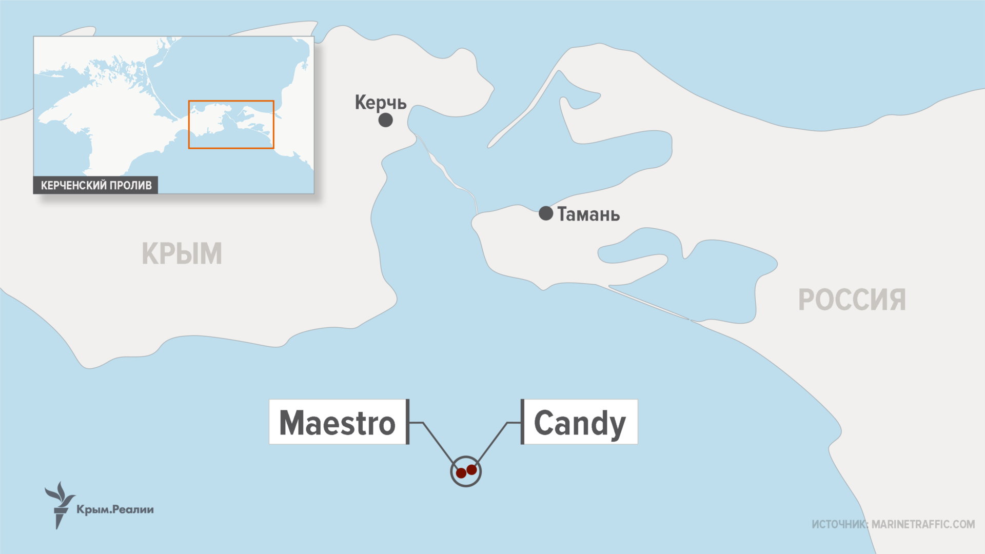 Танкер «Маэстро» шел в российский Темрюк, на его борту находились 14 человек – граждане Турции и Индии. На борту танкера «Канди» находились 17 человек – также граждане Турции и Индии. По словам украинского журналиста Андрея Клименко, танкеры принадлежат турецкой компании Milenyum Denizcilik Gemi, которая находится в «сирийском санкционном списке США».