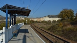 На платформе железнодорожной станции никого нет. Электрички сейчас ходят всего три раза в сутки.