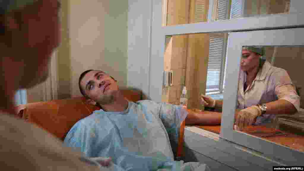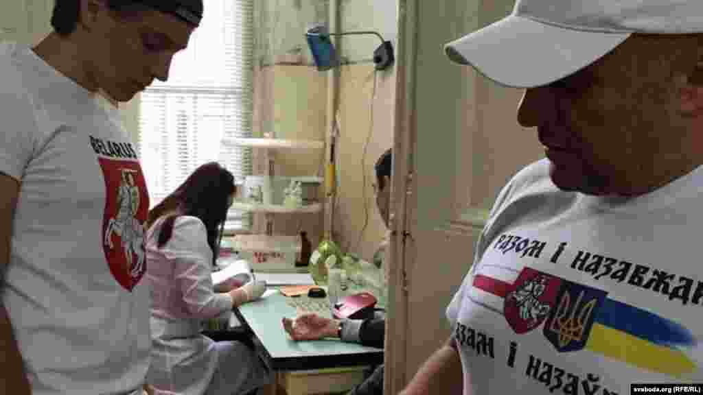 Белорусские и украинские футбольные фанаты сдали 5 сентября кровь для людей, пострадавших в зоне боевых действий в Украине.