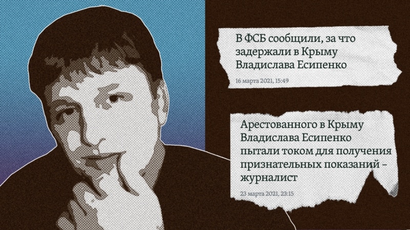 Есипенко задержали 10 марта 2021 года – на следующий день после его съемок акции в честь дня рождения Тараса Шевченко в Симферополе. Ему вменяют сбор информации «в интересах спецслужб Украины». Кроме того, по версии ФСБ, в автомобиле Есипенко был якобы обнаружен предмет «с внешними признаками самодельного взрывного устройства», а сам мужчина якобы «осуществлял фото- и видеофиксацию местности, объектов жизнеобеспечения и мест массового пребывания людей на территории Крыма».