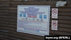 Однако на другом информационном стенде, расположенном неподалеку, значится иной график работы – с 9:00 до 19:00. На этих же информационных стендах указаны телефоны спасателей, «скорой помощи» и полиции, как это значится в рекомендациях Минкурортов и туризма Крыма.