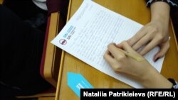 «Сегодня привела пятерых своих студентов. А сама, в таких условиях, пишу диктант впервые. Поэтому, конечно, волнуюсь. Но студенты волнуются еще больше. Говорят: «А вдруг плохо?». Но я их успокаиваю ‒ главное почувствовать свою силу и внимательно слушать.