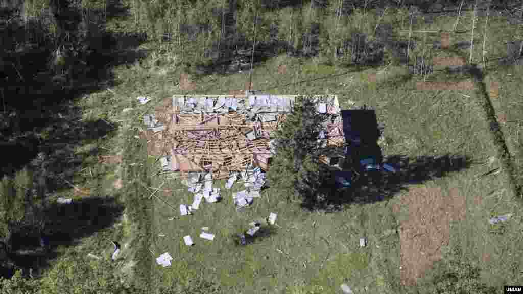 Корреспондент Радіо Свобода заснял с воздуха последствия взрывов боеприпасов на военных складах вблизи города Калиновка Винницкой области.