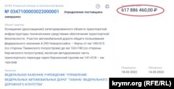По данным российского портала госзакупок, в марте в федеральном учреждении «Управление федеральных автодорог «Тамань» Федерального дорожного агентства» потратилиболее 600 миллионов рублей, в том числе, на обеспечение безопасности автомобильной части моста через Керченский пролив.