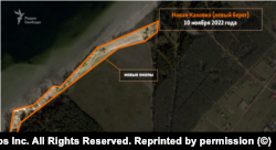 Перед отступлением из правобережной части Херсонской области российские войска вырыли окопы и соорудили укрепления для военной техники на левом берегу Днепра – об этом свидетельствуют спутниковые снимки, изученные Радио Свобода и расследовательским проектом "Схемы". Фотографии со спутника также подтверждают, что армия РФ взорвала несколько пролетов моста, ведущего к дамбе Каховской ГЭС.