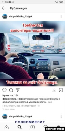 "Уважаемые граждане. В связи с нехваткой транспорта в условиях роста заболеваемости ОРВИ, администрация детской городской больницы обращается к вам с просьбой о помощи.