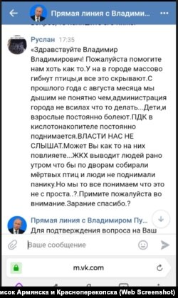 Вопросов о кислотных выбросах в Армянске в этом году российскому президенту задали многие жители северного Крыма.