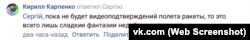 Ему не верит Кирилл Карпенко: «Пока не будет видео подтверждений полета ракеты, то это всего лишь сладкие фантазии недобрых украинцев».