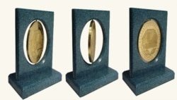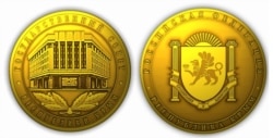 На сувенирных медалях изображена символика Крыма, которая вращается вокруг своей оси на подставке из акрилового искусственного камня.