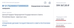 В ведомстве покупают 40 «Медалей в камне» и 180 наручных сувенирных часов от крымского спикера с гравировкой – всего на 700 тысяч рублей.