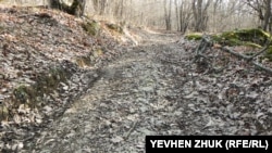 Вдоль правого берега ручья на восток идет старая мощеная дорога. Камни мощения видны только местами, в основном дорога заплыла грунтом. В какие века она построена, сказать трудно.