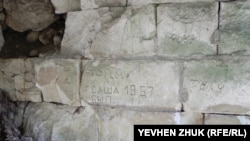 О том, что здесь когда-то шли бои, говорит массивный осколок снаряда, вымытый ручьем. А современники напоминают о себе процарапанными надписями на сложенном из инкерманского камня фундаменте моста.