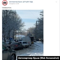 Не менее напряженная ситуация и на городских дорогах. Например, в Симферополе от гололеда пострадала фура.
