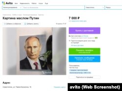 «Портрет Владимира Владимировича в рамке. Крепеж присутствует. Состояние: б/у», – говорится в объявлении.