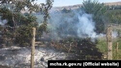 Еще один пожар произошел 16 августа в районе села Укромное под Симферополем. Пожарные боролись с возгоранием сухой травы. Существовала угроза ближайшим лесным насаждениям, но огонь удалось вовремя потушить.