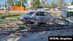 Ураганный ветер валил деревья в различных регионах Крыма, а под Симферополем «опрокинул» даже водонапорную башню. В Симферополе ветер повалил 43 дерева и повредил десять домов, сообщили в российской администрации города. Также пострадали многие автомобили, которые были припаркованы на улицах.