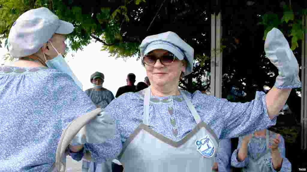 Ялтинские дворники давали «клятву чистоте» в новой, специально пошитой спецодежде, стилизованной в русском стиле ХIX века.