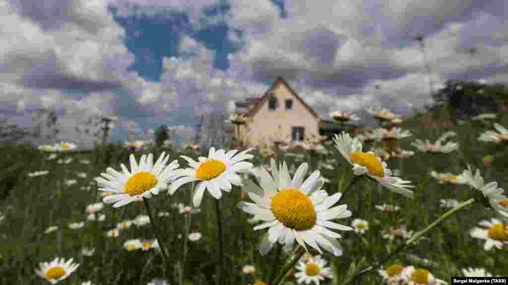 На фото – цветущие ромашки в селе Клиновка (до 1948 года Кисек-Аратук) Симферопольского района. Село расположено в центре района, в первом продольном понижении Внутренней гряды Крымских гор, на ручье Чешмеджи, левом притоке Салгира, примерно в 12 километрах (по шоссе) к юго-востоку от Симферополя. В селе проживает чуть более 100 человек.