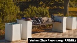 Мужчина отдыхает на лавочке, согретый лучами солнца. Делать это не возбраняется, но полицейский патруль к нему, однозначно, подойдет. Вдруг человеку плохо стало или алкоголя перебрал.