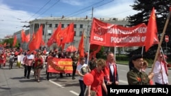 После митинга коммунисты прошли по тому же маршруту, что и предыдущие колонны. В начале шествия коммунистов шел оркестр, игравший мотивы советских военных песен, далее шли ветераны войны, а после них – местная партийная номенклатура и прочие члены партии. В их рядах участники несли плакаты с лозунгами: «Правительство и Законодательное собрание Севастополя в отставку», «Мир! Труд! Май!», а также стилизованные листовки с надписью «Едим Россию».