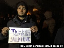 Как сообщает общественное объединение «Крымская солидарность», более 200 человек пришли к суду, чтобы поддержать Курбединова, люди фотографируются с самодельным плакатом «Ты – наш народный защитник».
