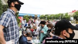 В Минске в Беларуси на площади напротив Комаровского рынка собрались несколько сотен людей, чтобы поставить подписи за выдвижение в кандидаты в президенты соперников Александра Лукашенко.