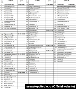 Власти Севастополя опубликовали график подачи отопления