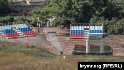 Рядом с колоннами рабочие устанавливают трибуны для зрителей. Эти работы ведутся в канун проведения в Керчи фестиваля театрального искусства «Боспорские агоны», некоторые представления в рамках которого проходят на руинах Пантикапея в центре Керчи.