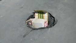 Уточняется, что сначала провал был небольшим, потом стал увеличиваться. По мере расширения дыры в асфальте местные жители стали засовывать в отверстие картонные объявления, обломки ящиков и разные предметы.