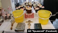 На предприятии АО «Крымхлеб» 14 апреля состоялся обряд освящения куличей, сырья, оборудования и помещений для пасхальной продукции.