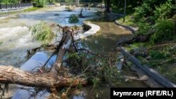 Российские власти Симферополя пока не сообщают о материальном ущербе, нанесенном набережной в результате экстремального сброса воды из водохранилища.