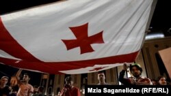 Во время шествия по центру столицы оппозиционеры и их сторонники выкрикивали «Иди» и «Сакартвело», информирует Радiо Свобода.