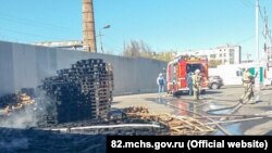 «По прибытию к месту пожара было установлено, что произошло возгорание деревянных поддонов на площади 25 кв. м. Угрозы распространения огня нет», – говорится в сообщении.