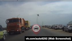 Как сообщает корреспондент Крым.Реалии, по некоторым данным, пролет над дорогой на предельно низкой, до 30 метров, высоте, совершил бомбардировщик Су-24М. Такие боевые машины сейчас дислоцируются на военном аэродроме в поселке Гвардейском неподалеку от Симферопольского аэропорта.
