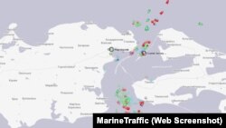 По информации, которую публикует сайт Marine Traffic, отслеживающий перемещение судов, в Азовском море, на подходе к Керченскому проливу, находятся сухогрузы и танкеры под флагами Украины, Панамы, Маршалловых островов, Танзании, Белиза, России и других стран.