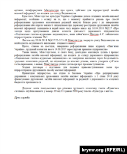 В самом Минкультуры вопрос Крым.Реалии о том, есть ли соответствующий указ о реформировании, и если нет, то когда его можно ожидать, проигнорировали.