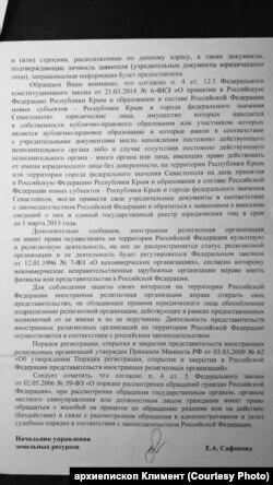 После российской аннексии, продолжил священнослужитель, он попытался переоформить эту землю по российскому законодательству, но этого так и не получилось сделать. Позже на эту землю начали претендовать в Римско-католической церкви.