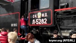 В рамках празднования Дня освобождения города от немецко-фашистских захватчиков в Керчь прибыл «Поезд Победы». Как сообщает корреспондент Крым.Реалии, попасть на железнодорожный вокзал Керчи в этот день было непросто. Власти закрыли движение троллейбусов в этом направлении, а маршрутки шли переполненные.