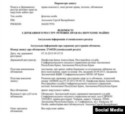 «Это выписка из государственного реестра имущественных прав, я купил эту выписку. Я официально приобрел этот документ, это доступно и любому гражданину Украины, по сути это открытый реестр», – рассказал в комментарии Крым.Реалии Сергей Мокрушин.