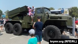 Ко Дню Военно-морского флота России на площади Нахимова в аннексированном Россией Севастополе прошла военно-техническая выставка, сообщает корреспондент Крым.Реалии.