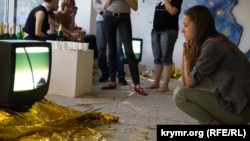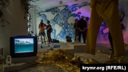 Главный арт-обьект выставки – карта мира без границ, нарисованная художницей. «Границ для людей не должно быть. Границы должны быть только для военных, для войны» – сказала Мария Куликовская в комментарии Крым.Реалии.