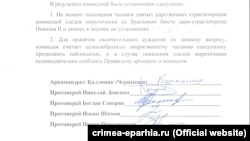 Как следует из документа, в состав комиссии вошли архимандрит Каллиник (Чернышев), протоиерей Николай Донецко, протоиерей Богдан Северин, протоиерей Иоанн Шимон, протоиерей Иоанн Пристанский.
