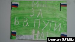 В холле подконтрольного Кремлю парламента Севастополя открыли выставку детских рисунков на тему президентских выборов в соседней России в 2018 году. Об этом сообщает корреспондент Крым.Реалии.