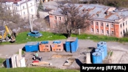 Специалисты из российского Санкт-Петербурга готовятся к укрепительным работам на склонах горы Митридат в Керчи. Как сообщает Корреспондент Крым.Реалии, сотрудники фирмы-подрядчика оборудуют площадку, на которой будут находиться рабочие. На склоне горы Митридат устанавливают временные вагончики для персонала и тяжелую технику.