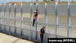 В Керчи вдоль строящейся трассы «Таврида», в районе жилых микрорайонов, заканчивают установку шумозащитных экранов. Как сообщает корреспондент Крым.Реалии, работы проходят на участке строящейся дороги, который пролегает между микрорайонами «Нижний Солнечный» и «Верхний Солнечный».