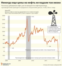В понедельник впервые в истории торгов на американских биржах цена майских фьючерсов на техасскую нефть WTI была отрицательной. То есть продавцы фактически предлагали деньги покупателям, готовым принять их нефть в ближайшее время. По словам экспертов, это, скорее всего, был уникальный эпизод, производное специфики работы финансовых рынков. Тем не менее он может быть предвестником дальнейшего падения мировых цен на нефть, пишет Радио Свобода.