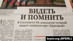 «Крымская газета» сообщает о презентации точного макета концлагеря «Красный» под Симферополем. По информации издания, эта максимально приближенная к действительности модель далеко не так проста, как может показаться на первый взгляд. За каждой постройкой, деревом, табличкой и зданием здесь – задокументированные воспоминания реальных людей, переживших ужас войны, десятки и сотни архивных документов. Отмечается, что над созданием макета работали зампредседателя российского парламента Крыма Владимир Бобков, собиравший данные о внешнем виде построек, расположенных на территории лагеря, и их назначении, крымский ученый-историк и этнограф Михаил Кизилов, историк и дизайнер Сергей Борисов, а также палеонтолог Дмитрий Старцев. На эту работу у команды ушел год.